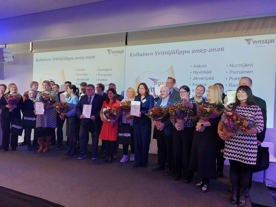Kaksitoista kuntaa sai Uudenmaan Yrittäjiltä kultaiset Yrittäjäliput