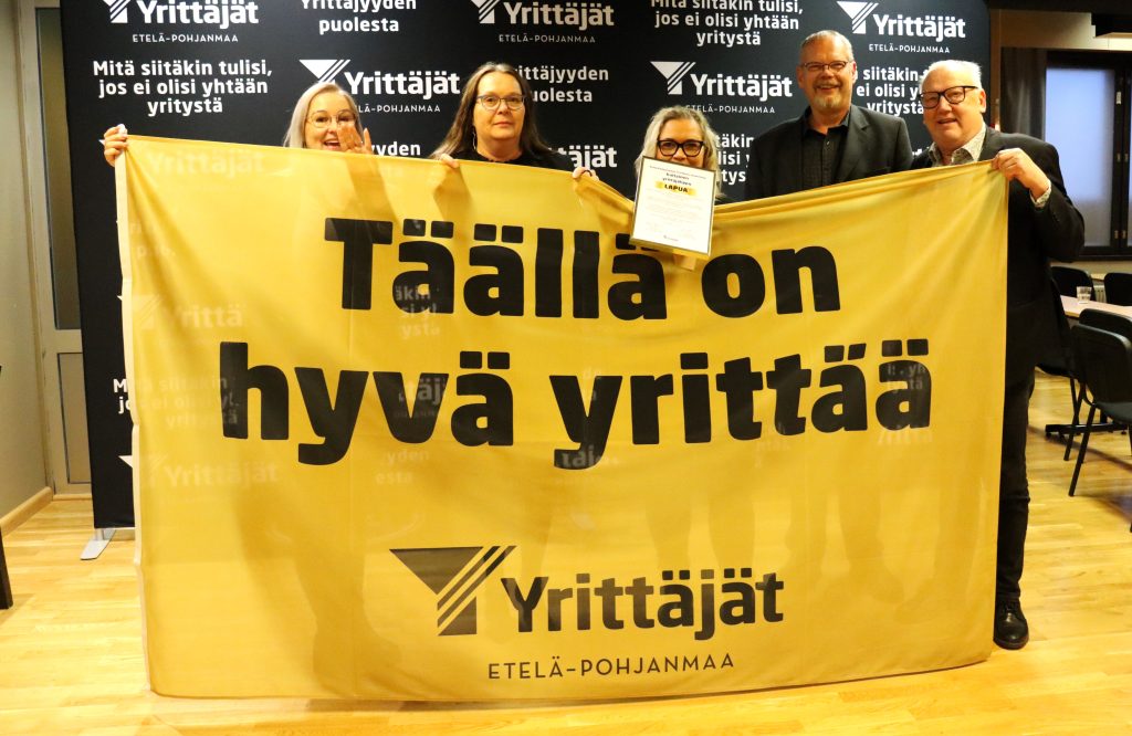 Kultaiset yrittäjäliput luovutettiin Yrittäjäystävällisin kunta -kyselyn tulosten perusteella Kauhavalle, Kurikalle, Lapualle, Alavudelle ja Ilmajoelle.