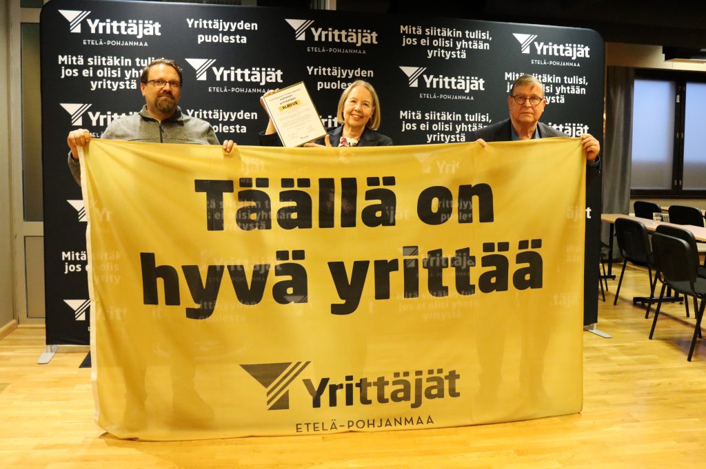 - Tämä tunnustus kertoo, että kunta kuuntelee yrittäjiä ja kehittää toimintaa yhdessä heidän kanssaan esimerkillisesti, Etelä-Pohjanmaan Yrittäjien puheenjohtaja Anne Niemi korostaa.