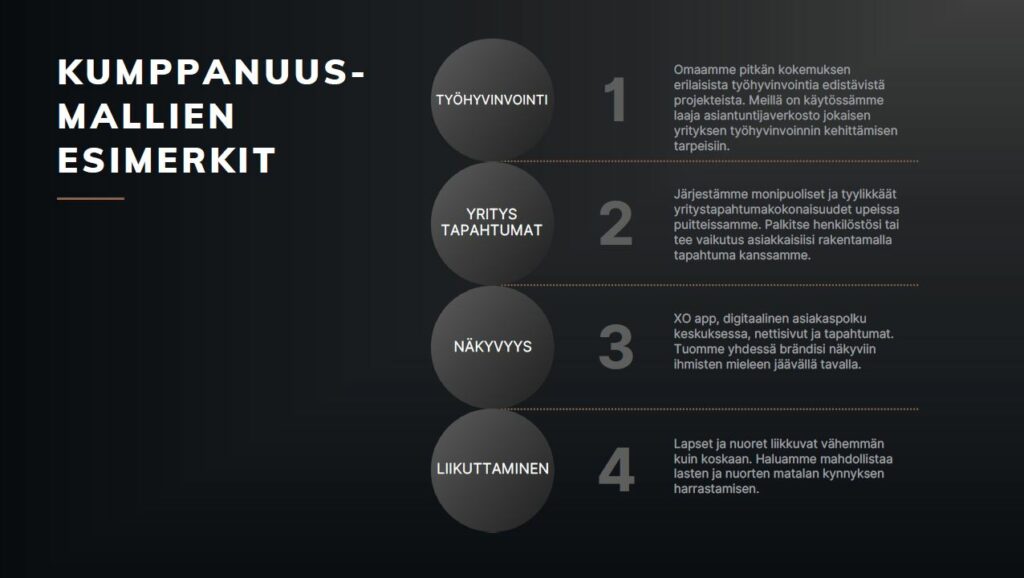 Jari kertoi myös heidän erilaista kumppanuusmalleistansa.