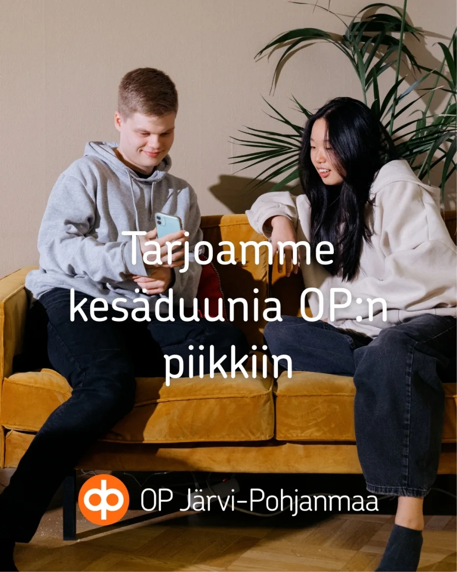 Haku on käynnissä 23.3.–19.4.2026. Tutustu kaikkiin työmahdollisuuksiin ja hae mukaan! Lisätiedot Op Järvi-Pohjanmaan sivuilta.