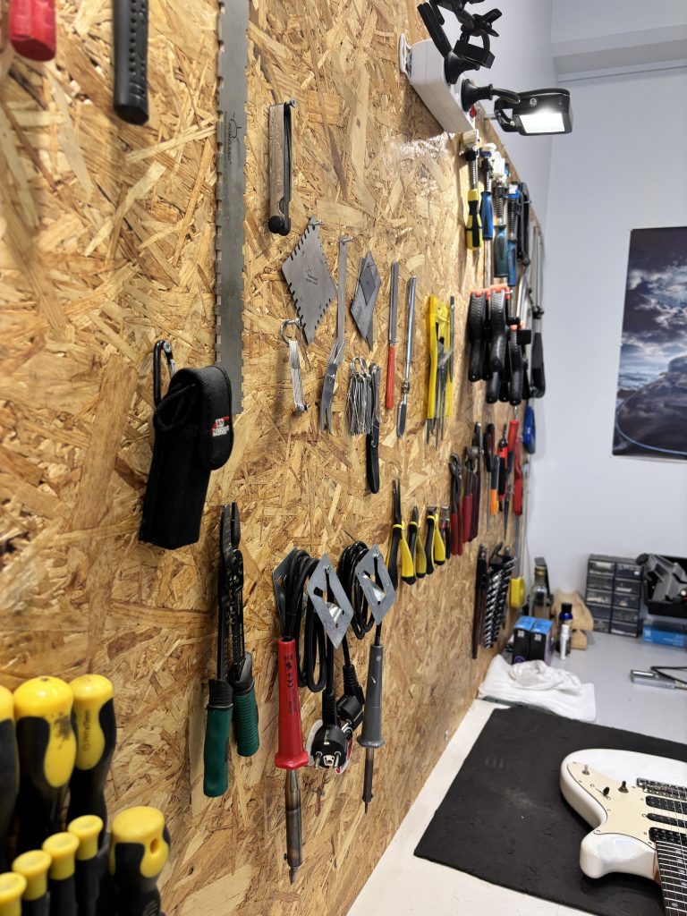 – Teen kyllä kitaroita, jos hinta on riittävä. Kun aloitin yritystoiminnan, tiesin, ettei minulla olisi vielä riittävästi asiakaskuntaa huoltotoiminnassa. Siksi rakensin kitaroita ja myin niitä 1 000–2 000 euron hinnalla. Hinta oli liian alhainen, sillä tuntihinta jää muutamaan euroon. Yhden kitaran valmistamiseen kuluu aikaa noin 40 tuntia. Lisäksi pitäisi brändätä ja antaa kitaroita ilmaiseksi kuuluisille soittajille, jotta kysyntää olisi riittävästi, yrittäjä kertoo.