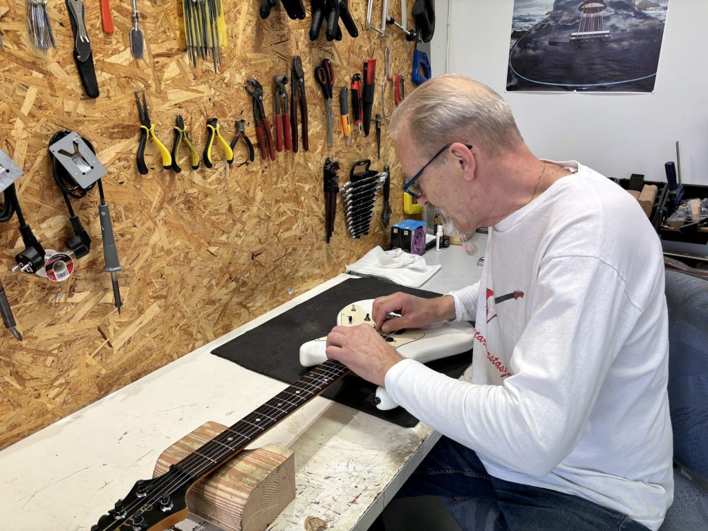 Porilainen yksinyrittäjä Jari Österlund, 61, ei unohda, miten hänen ensimmäinen itse tekemänsä kitara valmistui.