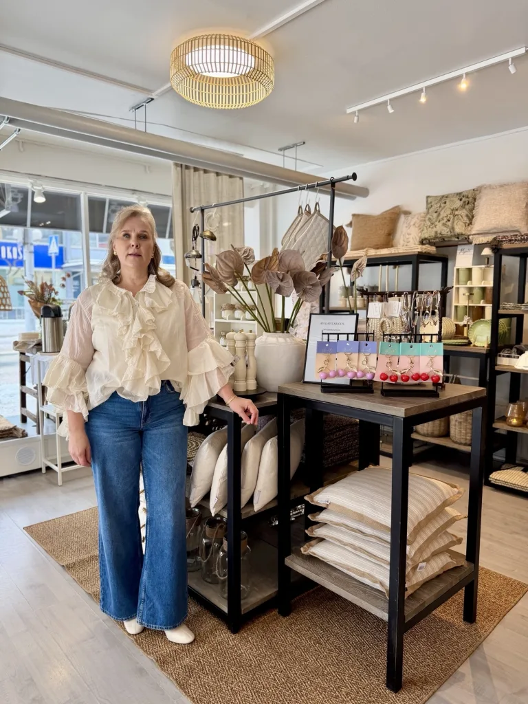 – Seuraavana syksynä aloin kehittämään ajatusta omasta kivijalkaliikkeestä. En tiedä, mikä siinä on aiemmin pelottanut, Ehkä oli helppoa olla palkkatyössä. Se oli tuttua ja turvallista ja siinä oli pitkät lomat. Työttömäksi jäätyäni havahduin siihen, ettei tämän ikäisenä työllisty enää helposti jos ei itse keksi ratkaisuja.