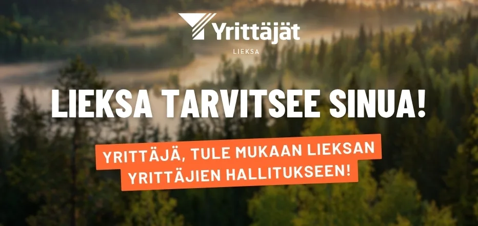 Haluatko vaikuttaa siihen, miltä yrittäjyys näyttää Lieksassa nyt ja tulevaisuudessa? Lieksan Yrittäjät hakee uusia jäseniä hallitukseensa tulevalle kaudelle.