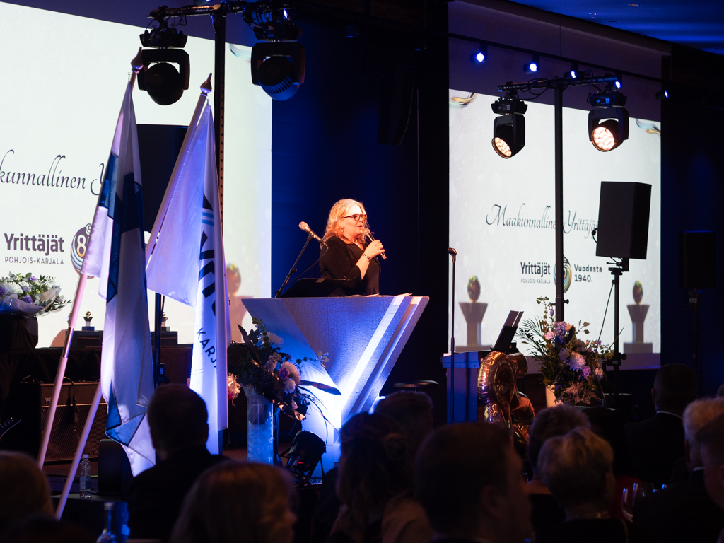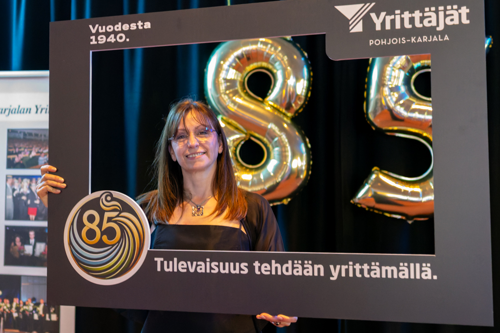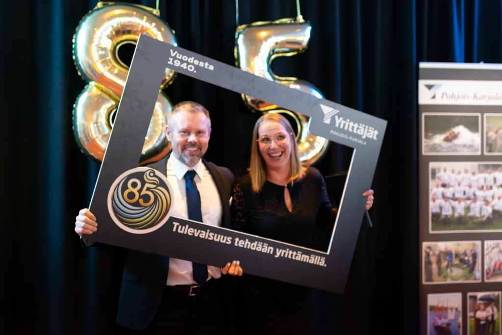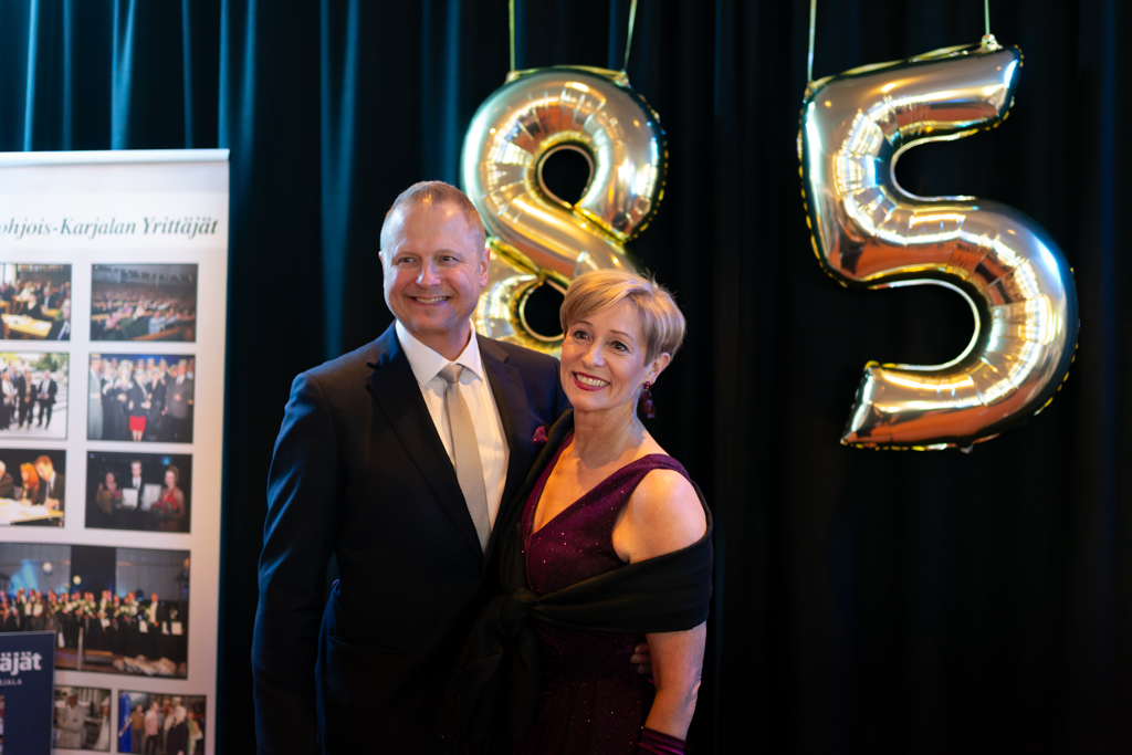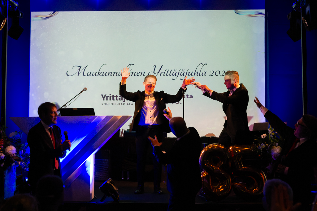 Maakunnallinen Yrittäjäjuhla kokosi lauantaina 22.11.2025 yhteensä 270 yrittäjää ja yhteistyökumppania Joensuun Kimmeliin juhlistamaan Pohjois-Karjalan Yrittäjien 85-vuotista taivalta. Ilta täyttyi lämpimästä tunnelmasta, kohtaamisista, musiikista ja juhlavasta ohjelmasta.
