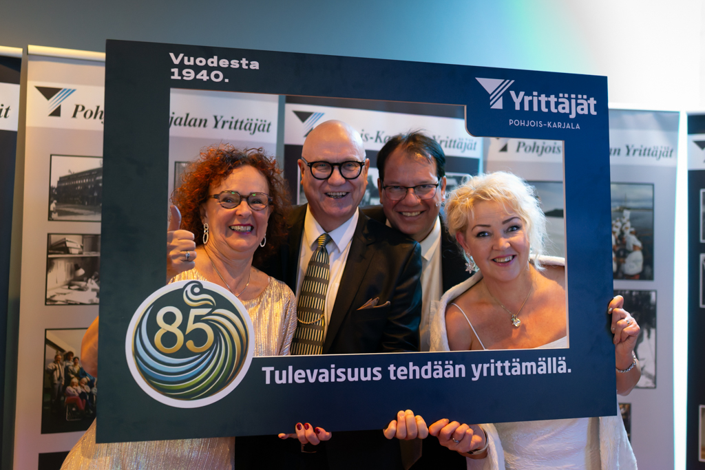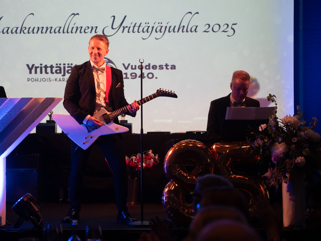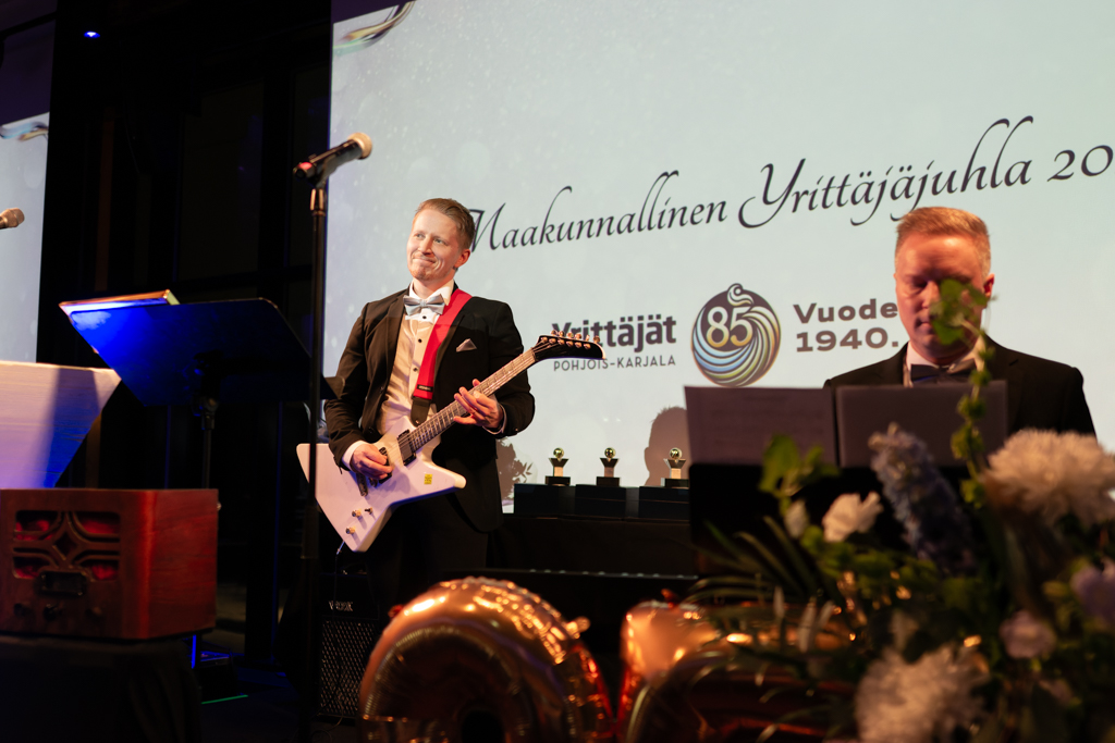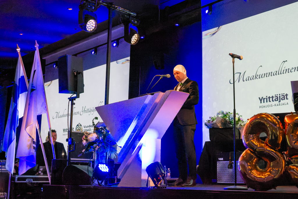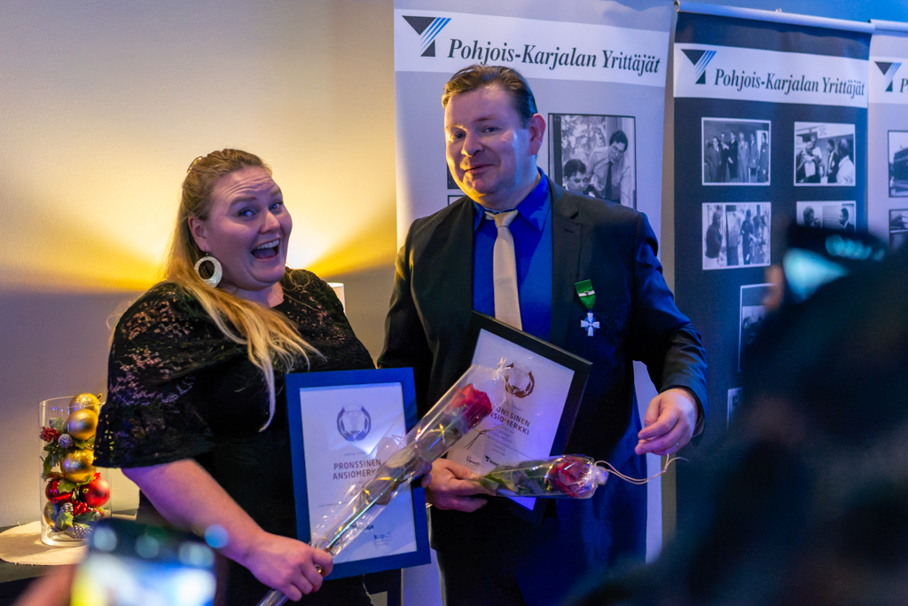 Maakunnallinen Yrittäjäjuhla kokosi lauantaina 22.11.2025 yhteensä 270 yrittäjää ja yhteistyökumppania Joensuun Kimmeliin juhlistamaan Pohjois-Karjalan Yrittäjien 85-vuotista taivalta. Ilta täyttyi lämpimästä tunnelmasta, kohtaamisista, musiikista ja juhlavasta ohjelmasta.
