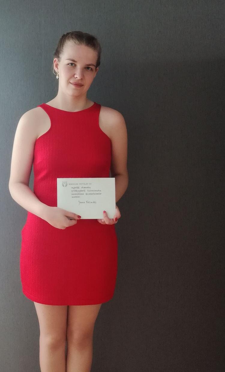Nakkilan Yrittäjien myöntämän stipendin saaja Jenna Välimäki.