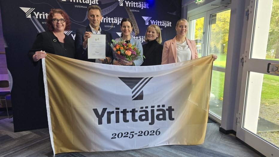 Nurmijärvi nosti sijoitustaan kahden vuoden takaisesta hopeisesta kultaiseen! Kunniakirjan ja juhlalipun tilaisuudessa vastaanottivat kunnanjohtaja Outi Mäkelä ja elinkeinojohtaja Marko Järvenpää. Mukana tilaisuudessa olivat myös elinkeinokoordinaattori Mia Antin, puheenjohtajamme Lotta Soiniitty ja Klaukkalan Yrittäjien puheenjohtaja Kirsi Mäkelä.