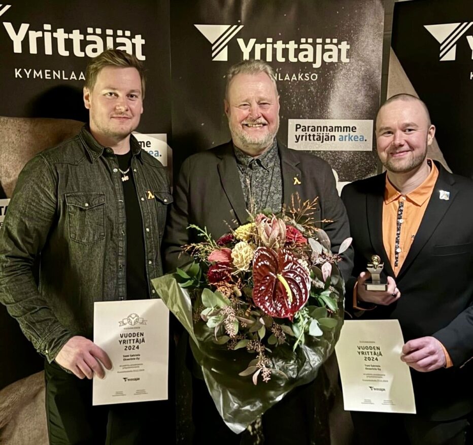 Kuusankosken Yrittäjät ry palkitsi yrittäjiä lauantaina 23.11.2024 Valkealan ja Kuusankosken yrittäjäyhdistysten yhteisissä pikkujouluissa. Palkitut ovat Vuoden yrittäjä Ekoeriste Oy, Toni Salstola, Jukka Salstola ja Sami Salstola ja Vuoden yksinyrittäjä Takkutasku T:mi, Tiina Marsala.
