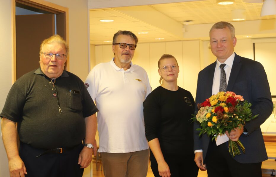 Onnittelukukat toivat muun muassa Pudasjärven Yrittäjien hallituksen jäsenet. Kahvikupin