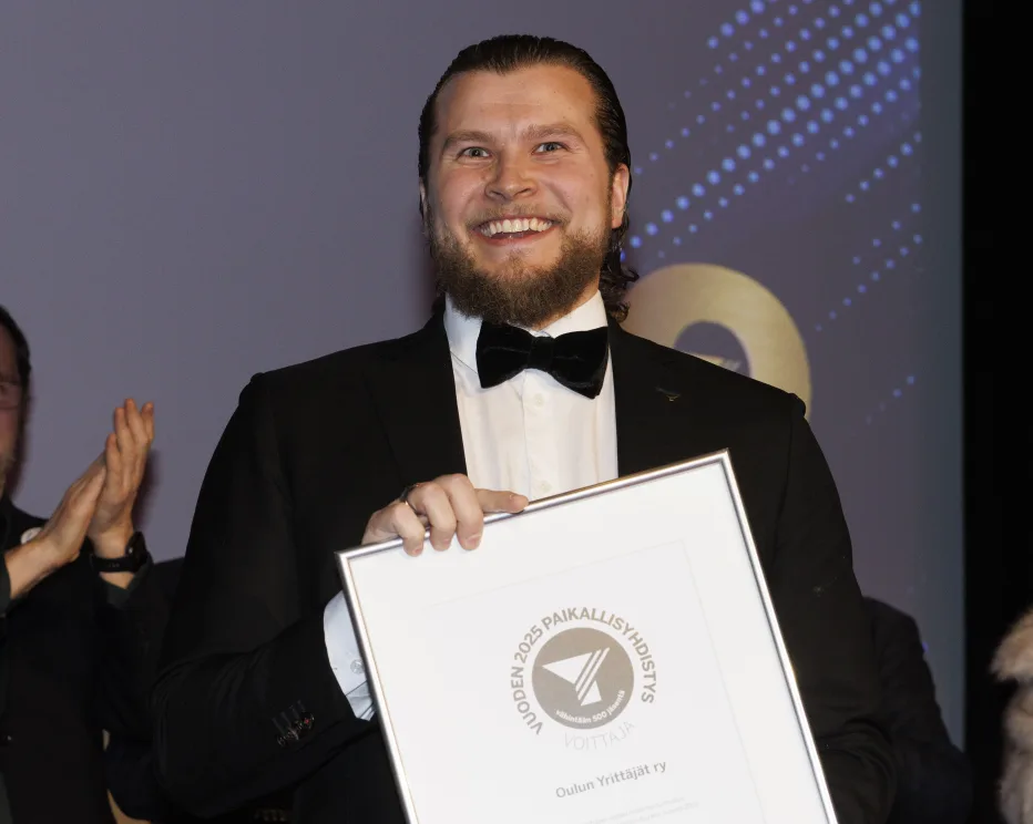 ”Olemme tehneet sen! Tämä palkinto on osoitus siitä intohimosta, jolla työskentelemme yrittäjyyden puolesta täällä pohjoisessa. Voitto ei ole syntynyt tyhjästä, vaan se on tulos pitkäjänteisestä yhteistyöstä”, sanoo Oulun Yrittäjien puheenjohtaja Joonas Puurunen.