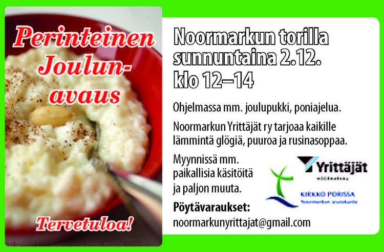 Perinteinen joulunavaus sunnuntaina 2.12. klo 12 – 14