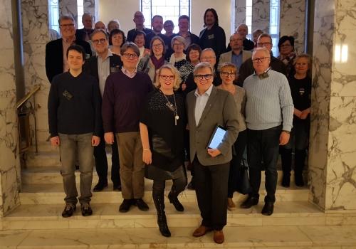 Lopuksi vieraat pääsivät hieman katsomaan, miltä Eduskuntatalo näyttää vuonna 2017 valmistuneen peruskorjauksen jäljiltä. Kaikki taisivat olla yksimielisiä siitä, että istuntosali, valtiosali ja muut tilat näyttivät todella kauniilta upeine yksityiskohtineen.