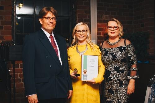 Kuvassa Johannes Lepistö, Vuoden yrittäjä 2018 -palkittu Suvi Roiko ja Ilse Lahdenpohja