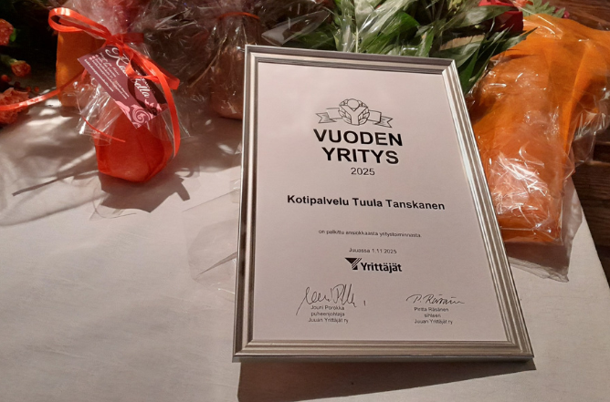 Vuoden Yrittäjä: Lämpimät onnittelut Tuula Tanskaselle ja Kotipalvelu Tuula Tanskaselle! Yritys tekee arvokasta työtä tarjoamalla kotiapua ja tukea ikääntyneille ja vammaisille Juuan alueella. Onnea tästä tärkeästä tunnustuksesta! 👵🏡