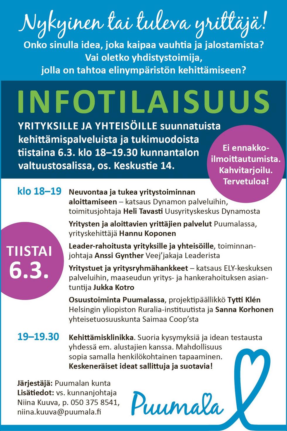 Tervetuloa Puumalan kunnantalon valtuustosaliin 6.3. klo 18.00 alkaen Rahoitusinfoon.