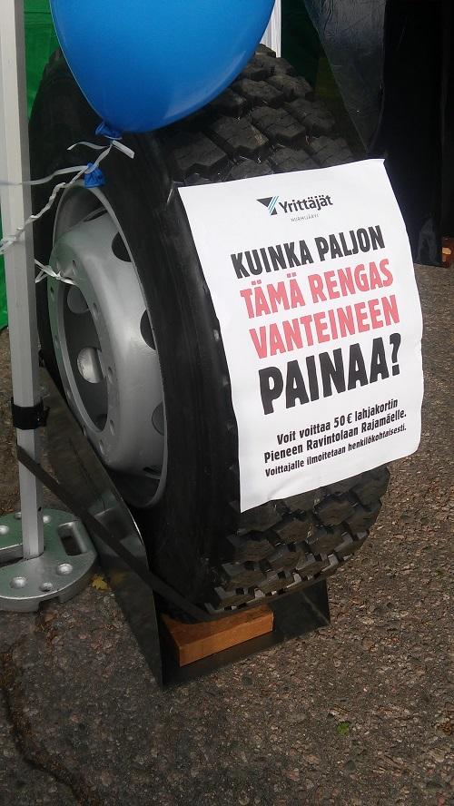 Nurmijärven Yrittäjien teltalla ollutta rengasta taputeltiin, kopulteiin ja ihmeteltiin. Kaikkiaan renkaan painosta jätettiin yli 260 arvauslappua.