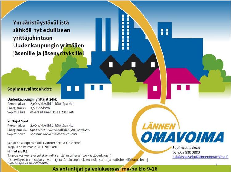 Ympäristöystävällistä sähköä nyt edulliseen yrittäjähintaan Uudenkaupungin Yrittäjien jäsenille ja jäsenyrityksille