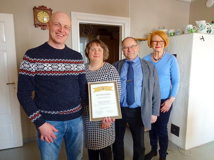 Ensimmäisenä kunniakirjan 2014 saivat vuosia ansiokkaasti paikkakunnalle runsaasti matkailijoita tuoneet Hiidenlinnan Reino ja Marja Koivuniemi.