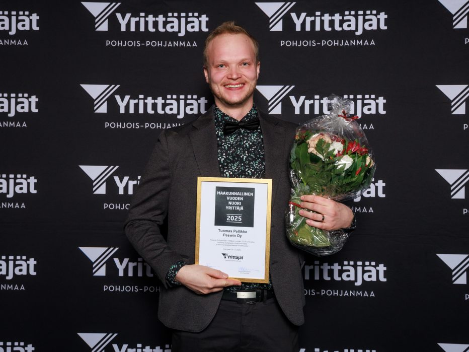 Tuomas Pellikka Peswin Oy on valittu Pohjois-Pohjanmaan Yrittäjien Vuoden nuoreksi yrittäjäksi 2025