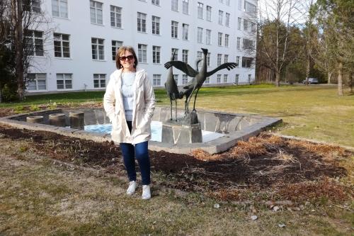 Kuvassa hallituksen jäsen Henna Kykkänen ja taustalla Härmän sairaala