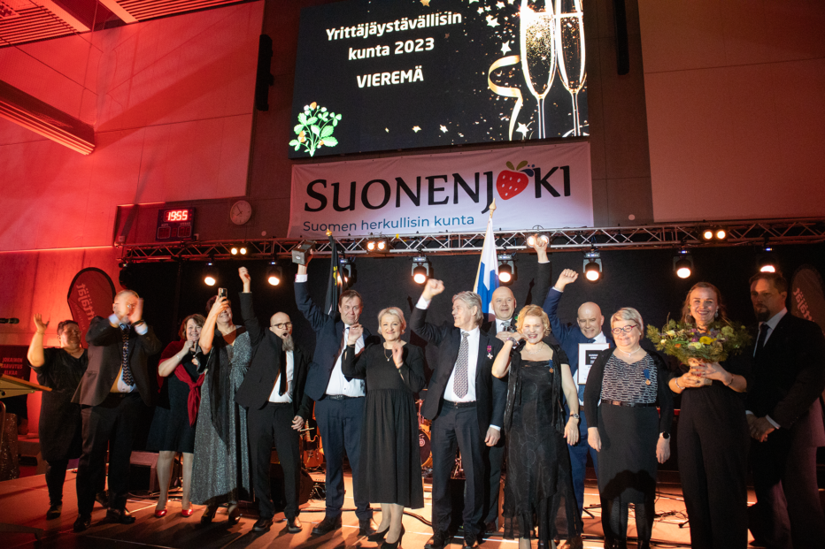 Kunnille kiitos hyvästä yhteistyöstä. Jokainen kunta rakastaa omia yrityksiään, mutta kaikissa kunnissa edellytykset eivät ole samanlaiset. Kunnat tekevät, minkä voivat. Tsemppiä kaikille! Kisa on taas tälle vuotta avoinna ja palkinto odottaa saajaansa. Eiköhän lähdetä jokainen sitä tavoittelemaan, kunnanjohtaja Suomalainen haastaa pilke silmäkulmassa.