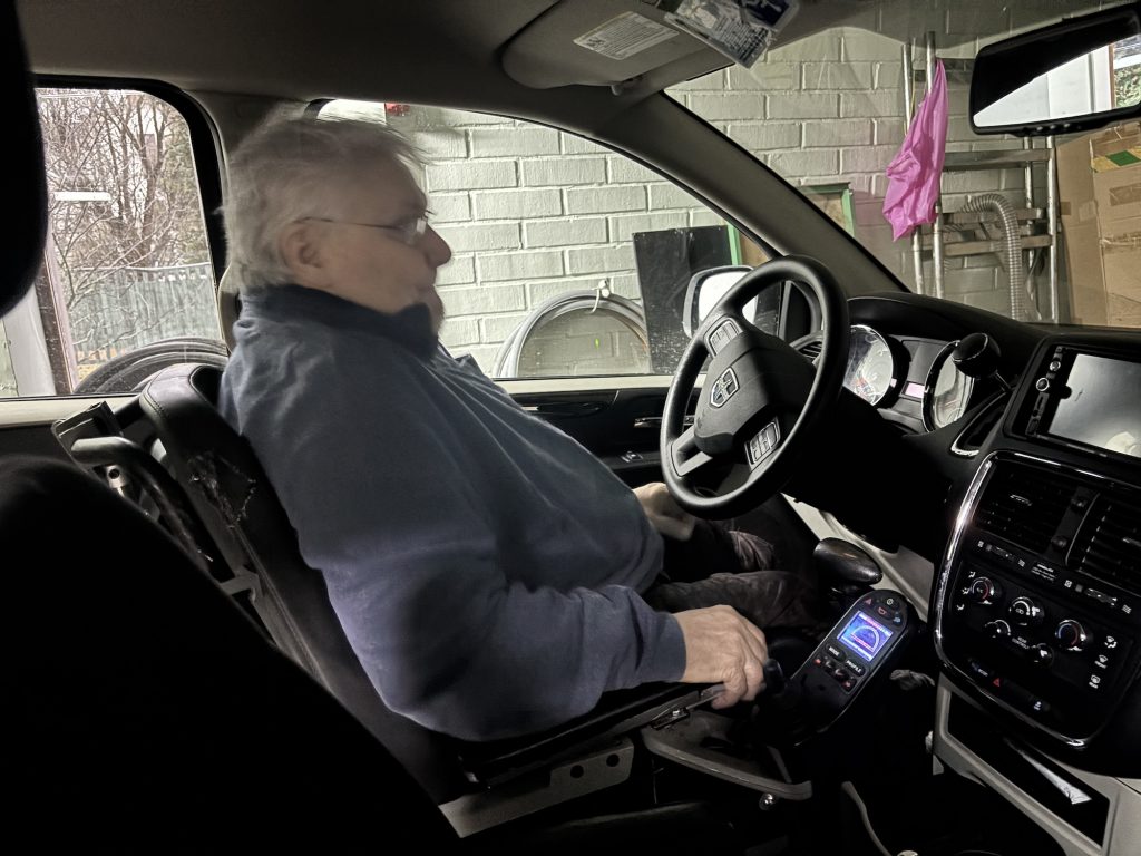 – Olen vasenkätinen, ja kahva oli aina oikealla, joten siinä tuli vaikeuksia. Rupesin suunnittelemaan itse laitteita, jotta pystyn ajamaan autoa.