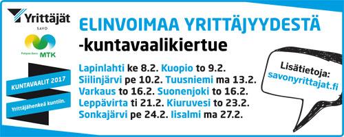 Savon Yrittäjät ja MTK-Pohjois-Savo sekä puolueet järjestävät yhdessä Elinvoimaa yrittäjyydes-tä-kuntavaalitilaisuuksia eri paikkakunnilla. Tapahtumissa järjestetään vaalipaneeli/keskustelu jokaisen paikkakunnan ajankohtaisista elinkeinopoliittisista teemoista. Tilaisuudet ovat avoimia kaikille.