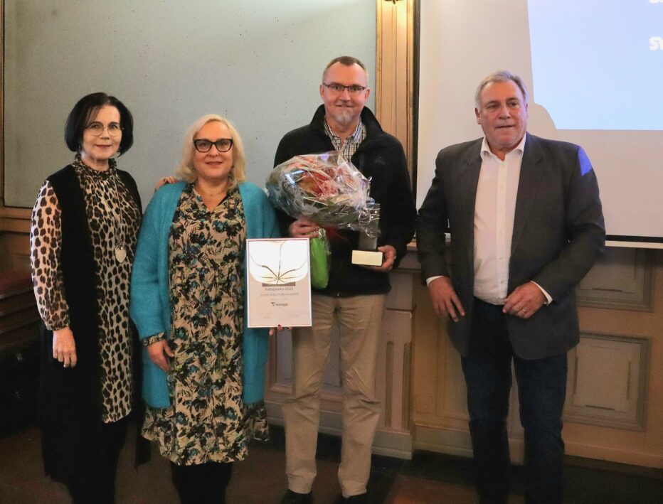 – Jouni on ollut aina auttavainen ja valmis yhteiseen toimintaan ja tekemään töitä yrittäjien eteen niin paikallisesti kuin valtakunnallisestikin. Hänen yrittäjätekonsa ovat kummunneet jo parinkymmenen vuoden takaa. On erittäin suuri ilo olla luovuttamassa juuri Jounille tämä tunnustus, kommentoi Tarja Arbélius emeritusklubista.